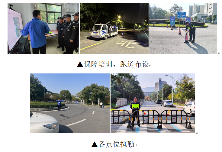 前期准备:勘查跑步路线,制定保障预案,开展专项培训,提前完成跑道清障隔离、安全设施布设等准备工作,奠定安全的坚实基础。活动当天:保安人员提前到岗执勤,疏导车辆及行人绕行,维护秩序。同时,时刻关注现场动态,及时为参赛人员提供帮助。欢乐跑结束后,迅速清理路障、解除道路封闭,恢复校园交通,实现安全保障工作的完整闭环。